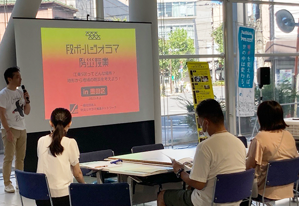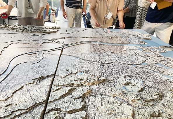 防災ジオラマでは、自分が住む地域の歴史や成り立ちを“学び自分たちで備える”をコンセプトに、段ボールジオラマキットを活用した防災教育プログラムを通して、自分たちが住むところの地形や過去の災害の教訓、災害リスクを学び、自分の命は自分で守ること(自助)を身に付けることを支援しています。地域住民と一緒に、住み慣れた場所を今までとは違った視点で俯瞰し、地域の防災のあり方を考えることで、地域防災力を向上させるとともに、地域コミュニティの連携・活性化、次世代への伝承につなげていきたいと考えています。